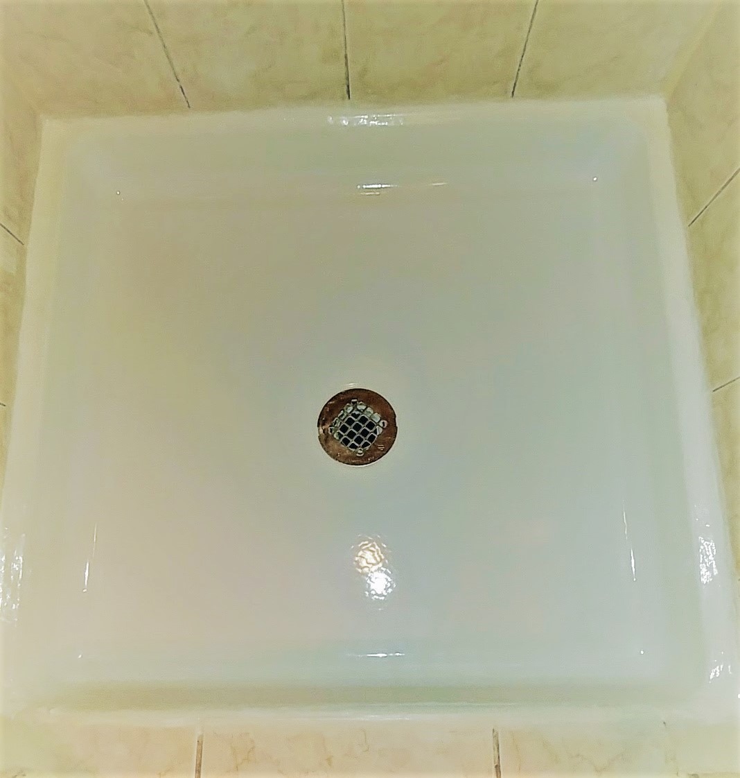 Cost-effective alternative to shower base replacement, Self-leveling epoxy for a smooth, streak-free finish, Durable finish resists chipping, peeling, and wear, Odorless & Zero VOC, Perfect for small 2x2 and 3x3 shower base refinishing